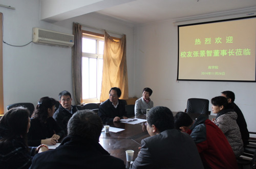 2014年11月24日上午,商学院邀请校友张景智董事长就学院学科专业建设进行座谈。商学院院长王小平、党总支书记邢静义等学院全体领导和部分教师出席座谈会。