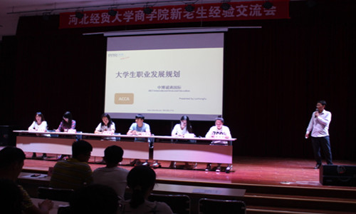 交流会分为“开场致辞、嘉宾发言、观众互动”三个环节。首先团委书记康晗老师发言,鼓励同学们明确奋斗目标,认真做好角色转换,做到知识能力双丰收,及早做好人生规划,迎接美好大学生活。随后,优秀老生代表结合自身经验,在目标确立、自我定位及职业规划等方面给予同学们具体的指导意见,希望同学们处理好能力培养与知识积累之间的关系,注重并全面提升综合素质。在互动环节,老生代表就课外活动与课堂学习的关系、所学专业前景、考研与择业等新生关注的问题给予耐心解答。交流会组织严密,掌声不断,营造了和谐向上的会场氛围。