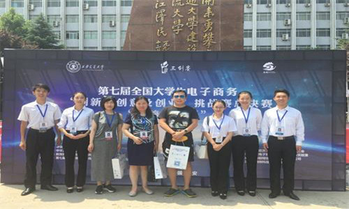 2017年7月21至22日,教育部高等学校电子商务类专业教学指导委员会主办的第七届全国大学生电子商务“创新、创意及创业”挑战赛总决赛“康养石柱杯”在西安交通大学隆重举行。由商学院和彦鹏老师带队,忻红、康晗老师指导,商学院任孟义、张源滢、孙啸、刘港及会计学院吴柳青同学组成的 “燕赵合伙人”团队荣获全国总决赛一等奖。
