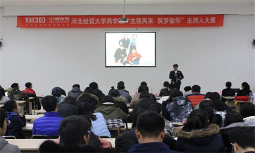 12月7日晚19时,商学院“主我风采,筑梦韶华”主持人大赛决赛在大学生活动中心1号厅进行, 12位选手脱颖而出进入决赛。优秀主持人代表王浩宇、于欣池及学院120余名学生参加此次活动。