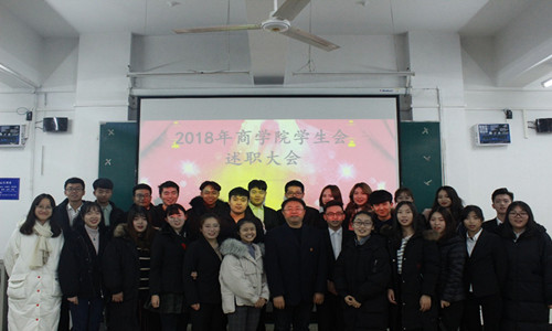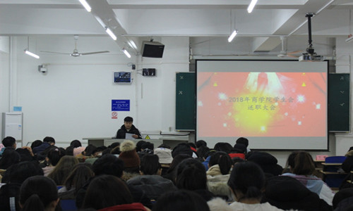 12月10日晚7点,商学院在第三教学楼b301举办“2018年商学院学生会干部述职大会”,商学院党委副书记董爱民出席,第十四届全体学生会成员及班级学生干部代表200余人参加大会。会议由商学院学生会副主席丁毅同学主持。