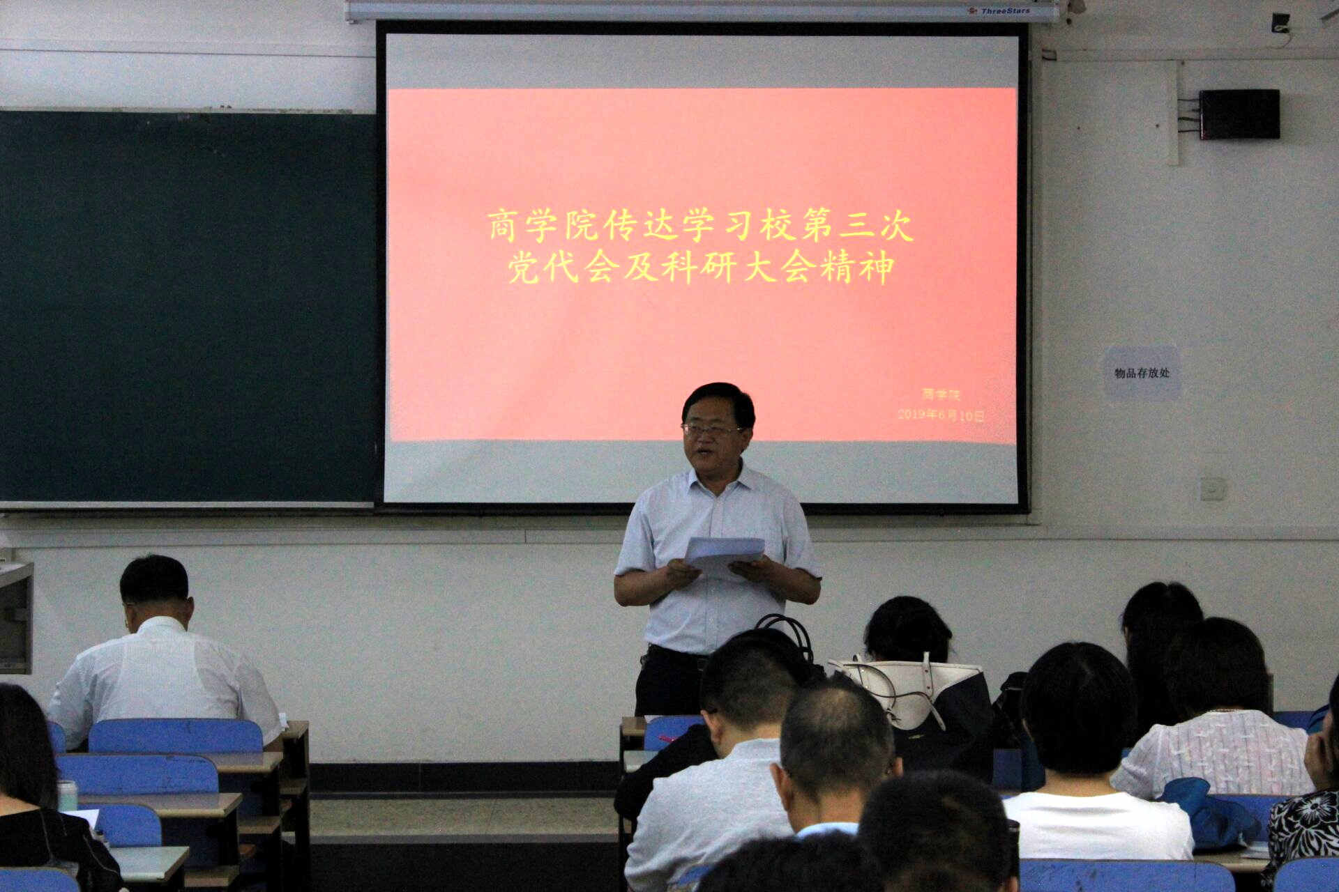 第三次党代会及2019年科研工作大会精神。学院党委书记马兵林、院长王小平分别主讲,全院教职工80余人参加。