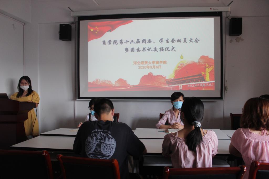8月6日下午三点,商学院在三办中会议室举行第十六届团委、学生会动员大会暨团委书记交接仪式。商学院党委副书记侯彦利、原商学院团委书记康晗、新任商学院团委书记路荣以及全体商学院团委、学生会的35名学生工作成员参加会议,会议由学院团委副书记刘美蒴主持。