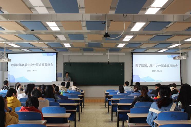 10月19日下午,商学院在北三教B301举行第九届中小外贸企业双选会,商学院党委副书记侯彦利、就业工作负责老师李婷及一百余名2021届学生参加会议。