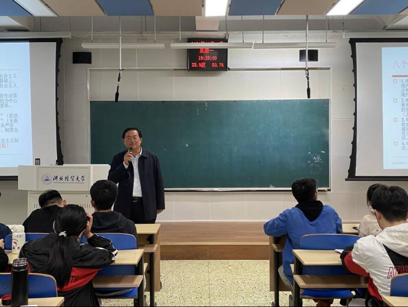 10月18日晚,商学院第51期学生党课培训班在北三教A301教室开班,学院党委书记马兵林讲授首场党课,全院入党积极分子近200人参加学习培训。