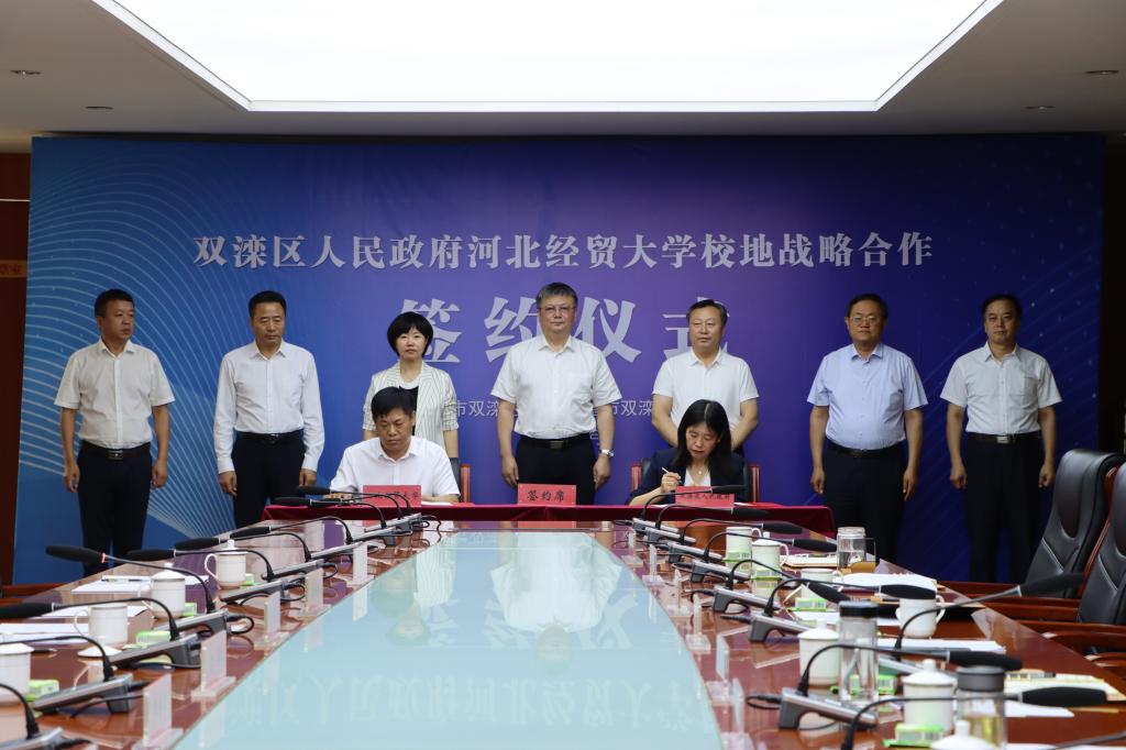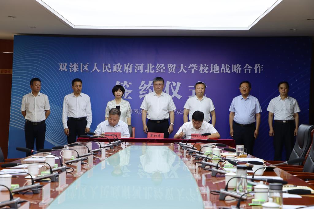 与双滦区人民政府举行战略合作协议暨项目合作协议签约仪式。校党委书记刘兵出席并讲话,校党委常委、副校长杨金田,校区域协调发展研究院院长李伟红,商学院党委书记马兵林、院长刘华光及双滦区委书记张抗震、区人大常委会主任傅云林、区政协主席厉辉等领导出席。双滦区委副书记郑洪波主持签约仪式。