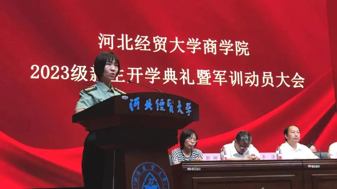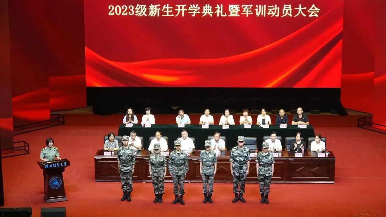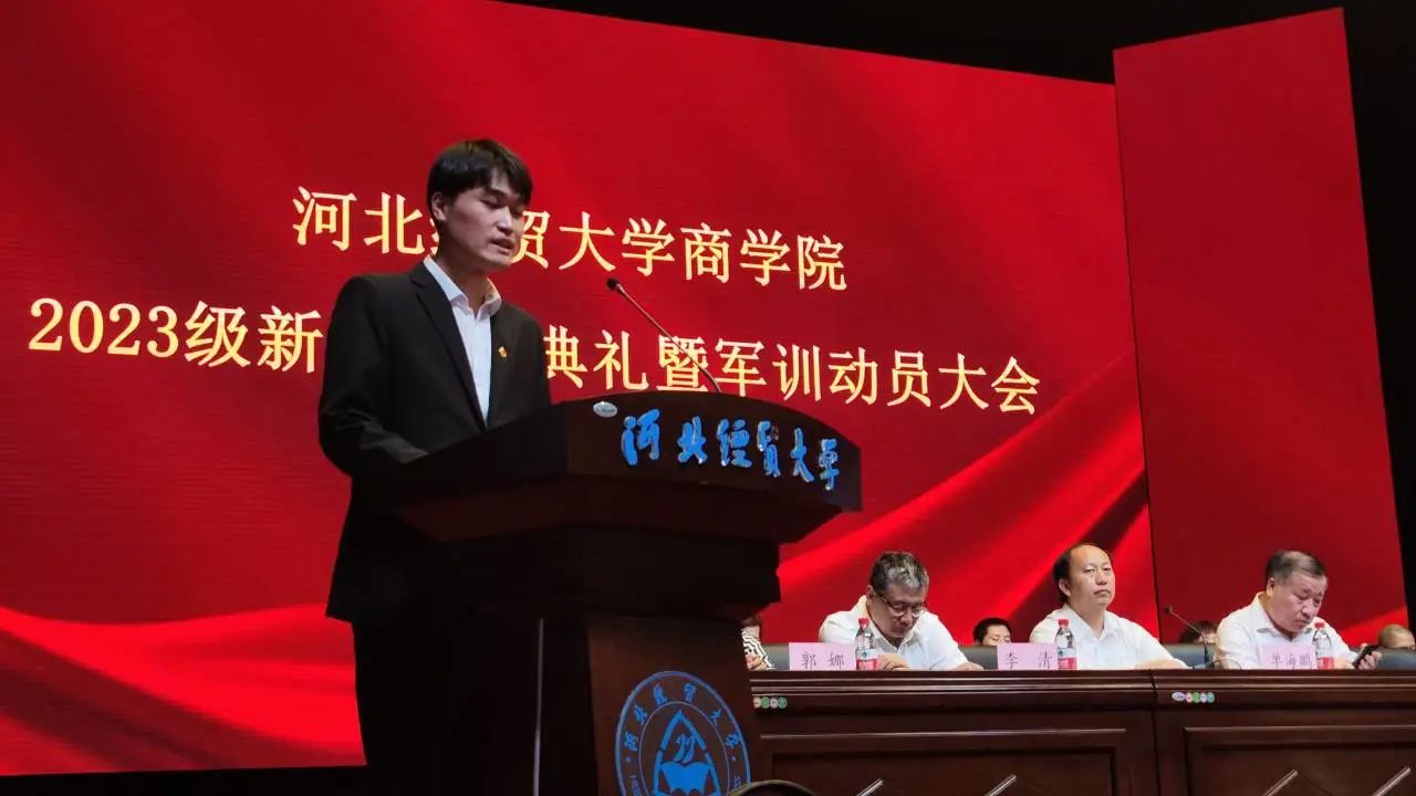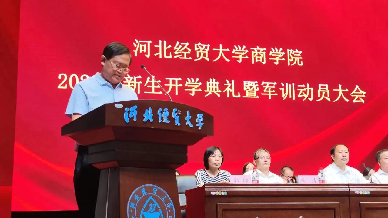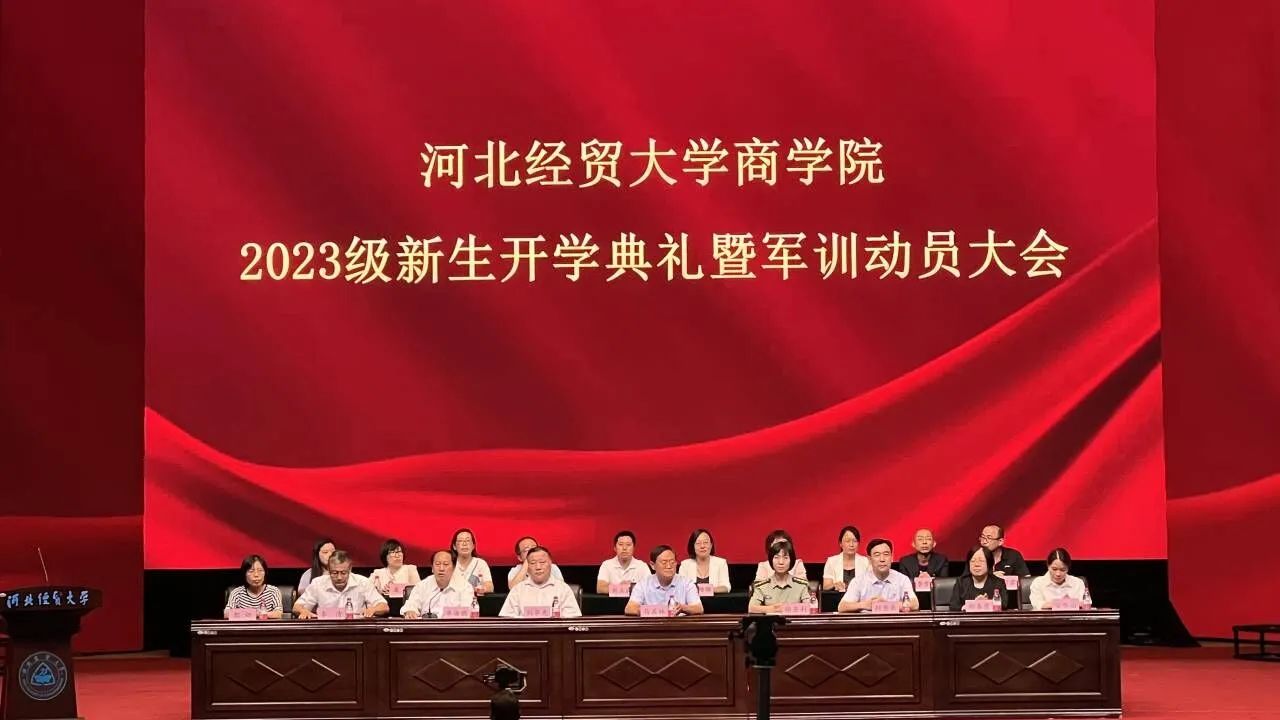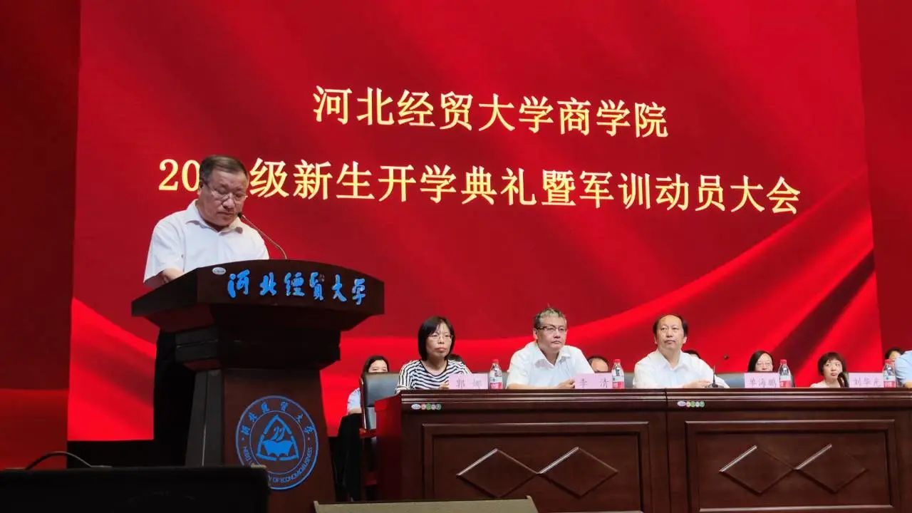 8月24日下午三点,商学院在校礼堂隆重举行2023级新生开学典礼暨军训动员大会。商学院党委书记马兵林、院长刘华光、党委副书记侯彦利、副院长单海鹏、刘振滨、正处级辅导员韩意来、各系主任、各科室负责人以及2023级全体新生辅导员老师参加本次活动,会议由单海鹏主持。