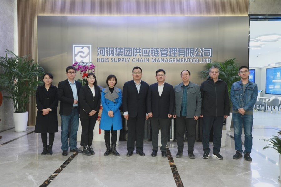 院长王重润带队,党委副书记侯彦利、副院长单海鹏、国际贸易系主任李清、数字经济系副主任李涛、团委书记路荣一行共6人赴河钢集团供应链管理有限公司(简称河钢供应链)走访会谈。河钢供应链市场运营部总经理杨世广、创新研究院总经理董大伟、数据组负责人李远、数据组张兴龙参加本次活动。