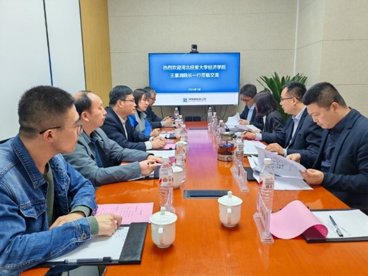 参观结束后,校企双方在会议室进行了深入座谈,王重润介绍了学院的发展历程、专业特色、学科建设、育人成效等情况,侯彦利介绍了学院访企拓岗专项行动的目的,以及学生实习实践、新财经第二课堂开展情况,单海鹏重点介绍了新财经数字经济专业的教学体系和课程设置情况。企业与会领导和负责人分别从企业发展规划、未来发展前景、数据分析方面的人才需求等多个方面做了详细介绍。校企双方在今后如何深度合作展开了热烈讨论,最终在人才培养模式创新开展、校企课题研究项目共建、服务区域经济发展协同合作等方面初步达成合作意向。