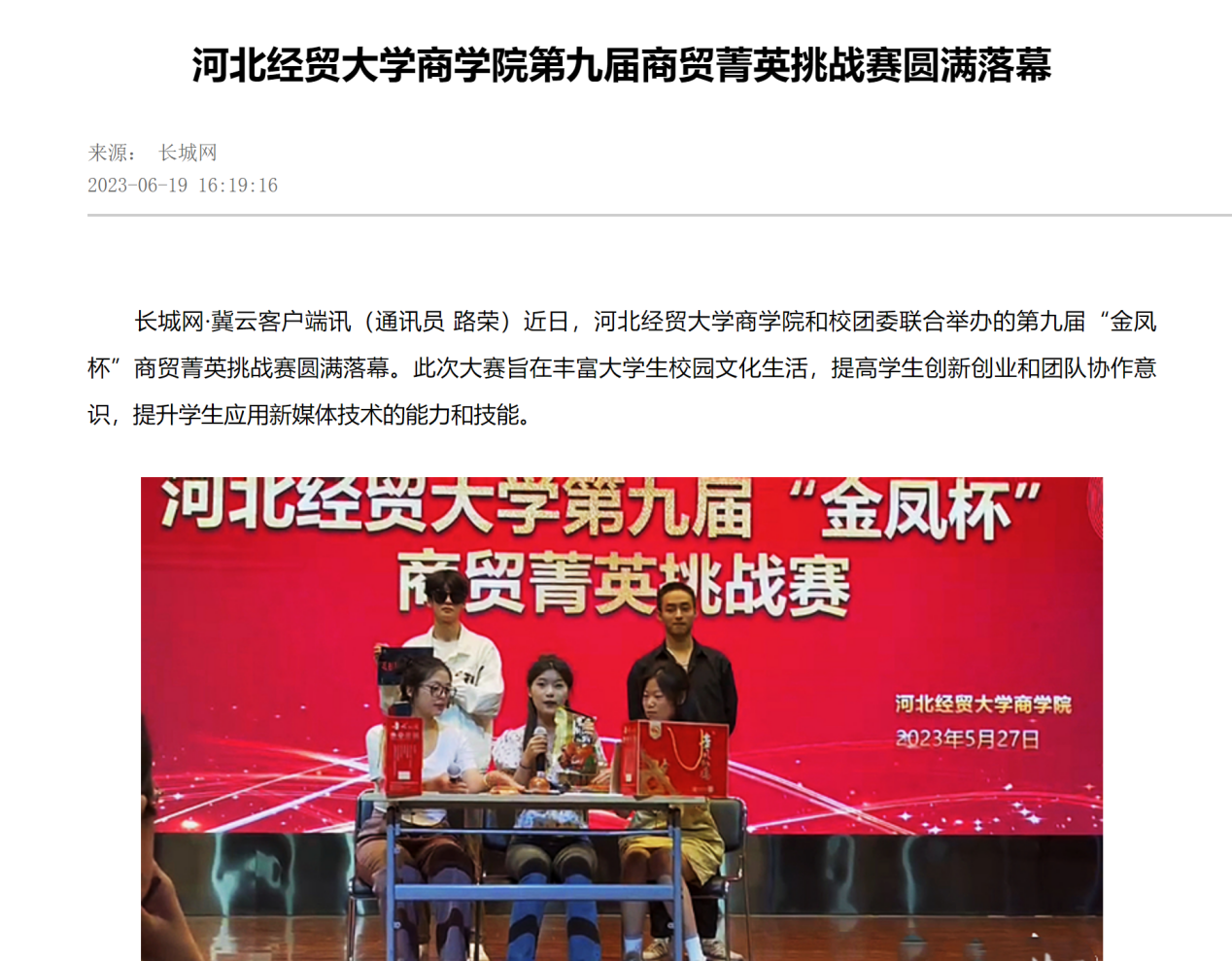 推进开展“商贸菁英挑战赛”团青品牌活动,已持续开展九届,2022年举办“君乐宝杯”商贸菁英挑战赛,活动被学习强国以“乡村振兴商品走进河北高校”为题进行了宣传报道,2023年举办“金凤杯”商贸菁英挑战赛,依托校企合作平台,以竞赛为引领,促进学生专业技能和职业素养的双线提升。