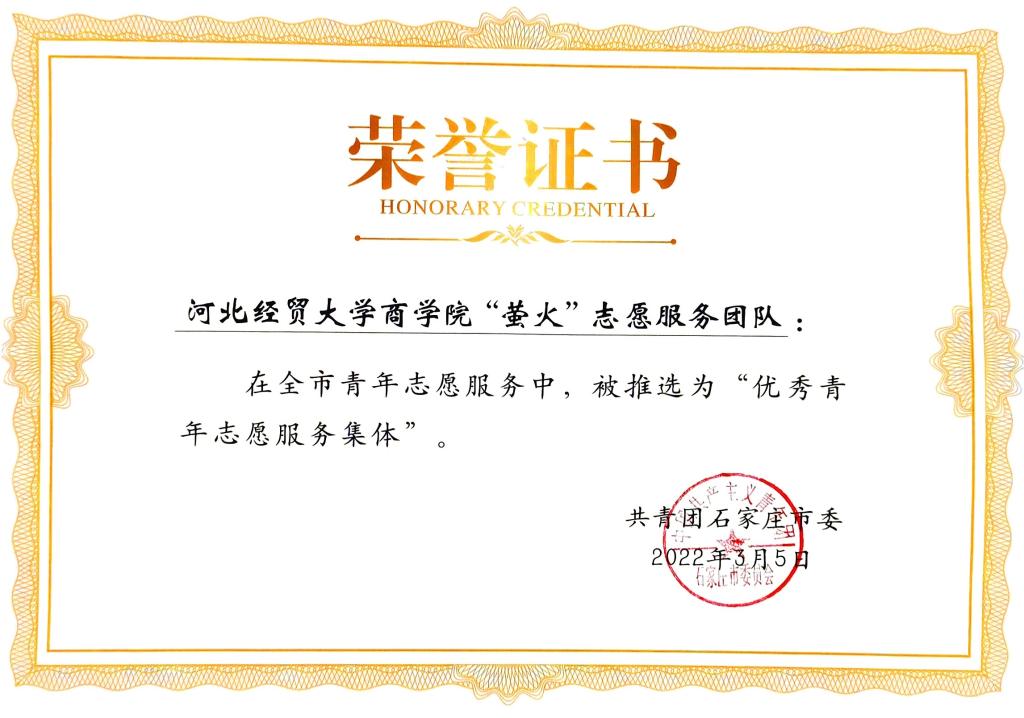 深耕“萤火”志愿服务项目,拓宽志愿服务活动领域。立足专业特色,创新开展“筑梦财商”经济学小课堂品牌志愿服务活动,为小学生讲授“财商思维培育”精品课程,2023年获校级优秀志愿服务项目。“萤火”志愿服务团队连续两年获得石家庄市优秀青年志愿服务集体。