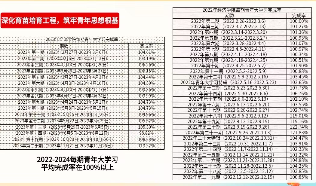 坚持思想引领,学习先行。青年大学习平均完成率在百分百以上;每周一次“学习圆桌”会议,读红色经典,悟红色精神。