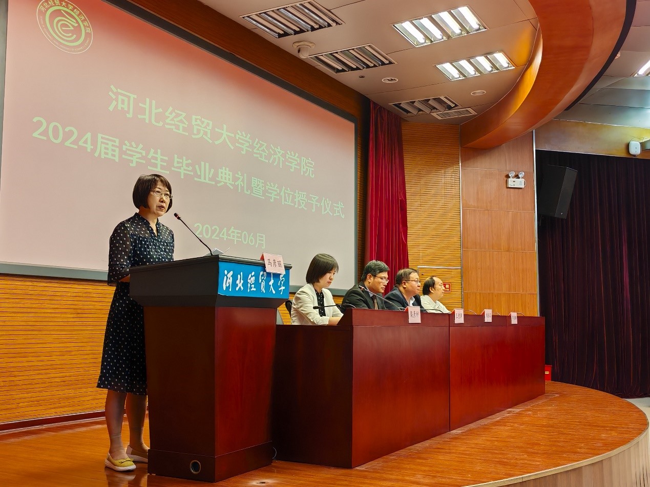 贸易经济系教师马彦丽作为教师代表发言,她表示,毕业既是终点,又是起点,希望同学们毕业后安顿好自己的身心,做一个有益、有趣的人,有一份事业,增进对社会的理解,丰富自己的精神世界。