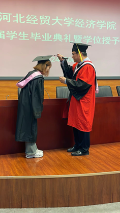 学位授予情况。宣读完毕后,刘振滨和王重润为毕业生一一拨穗并颁发毕业证书、学位证书。仪式结束后,同学们纷纷与老师合影留念,为大学生活留下最美的注脚。最后,全体教师起立为学生送行。
