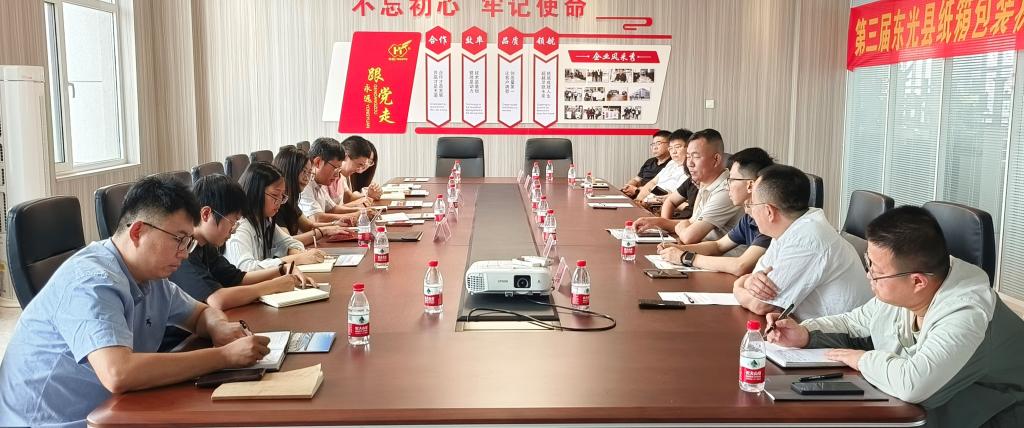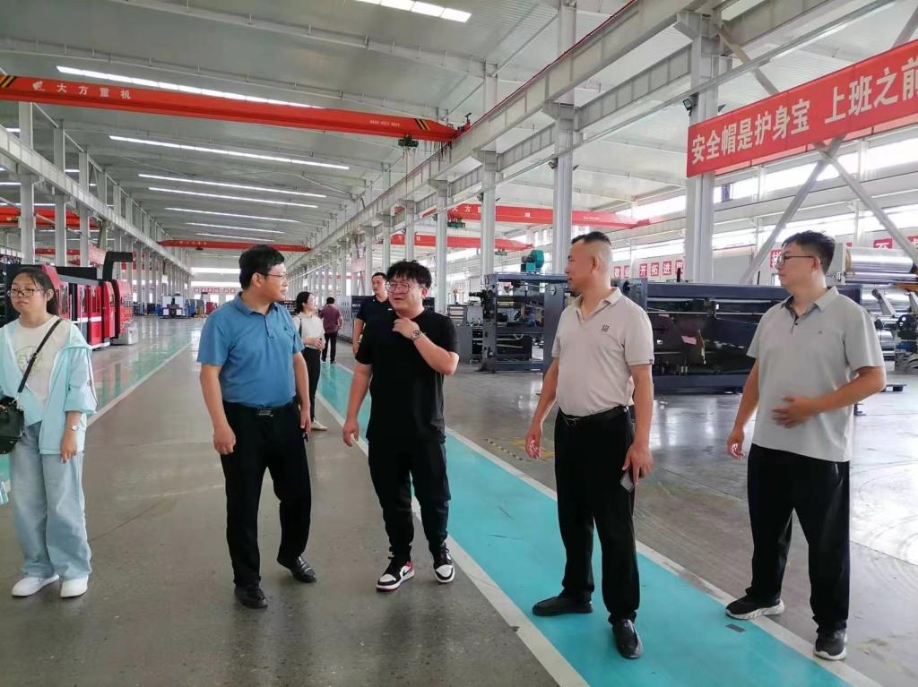 调研团队共同参观了华宇纸箱机械有限公司、韵翔纸箱机械有限公司和新光纸箱机械制造有限公司,这三家公司主要产品分别是印刷联动机、水墨印刷机和瓦楞纸板生产机。通过对公司实地走访,调研团队进一步了解东光纸箱包装机械设备的制造、运行过程及优势,更深刻体会了“世界包装看中国,包装机械看东光”。