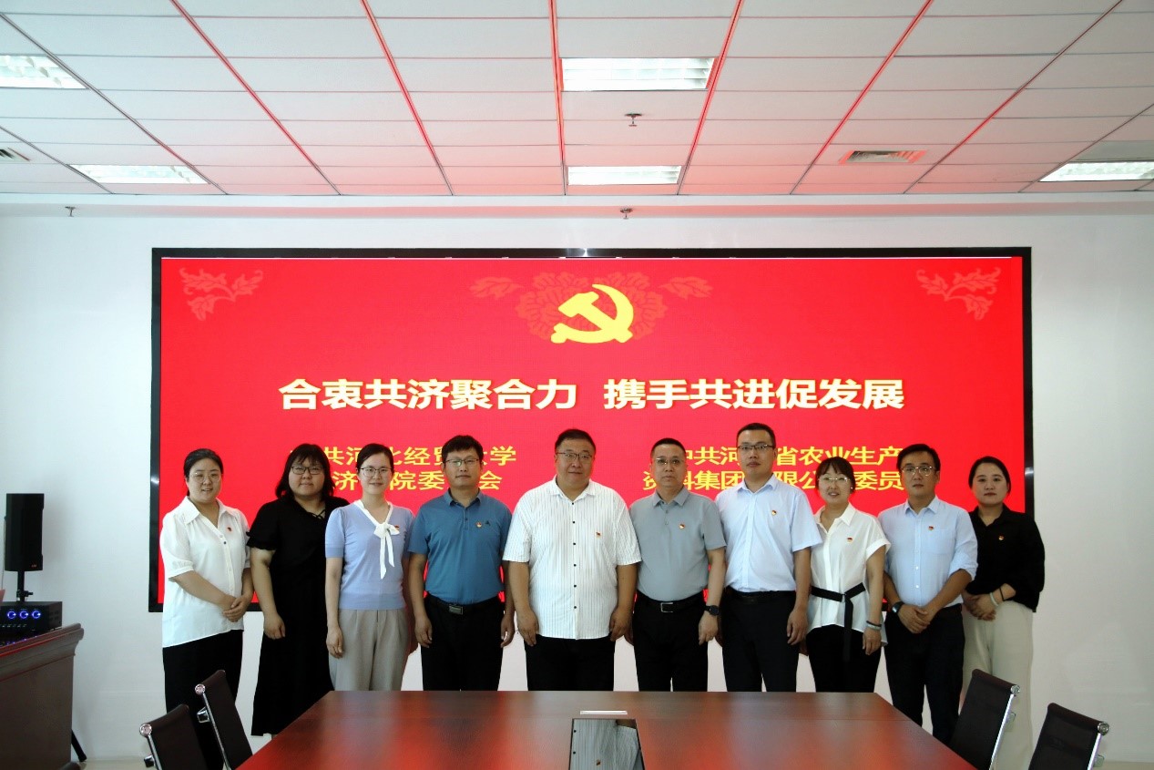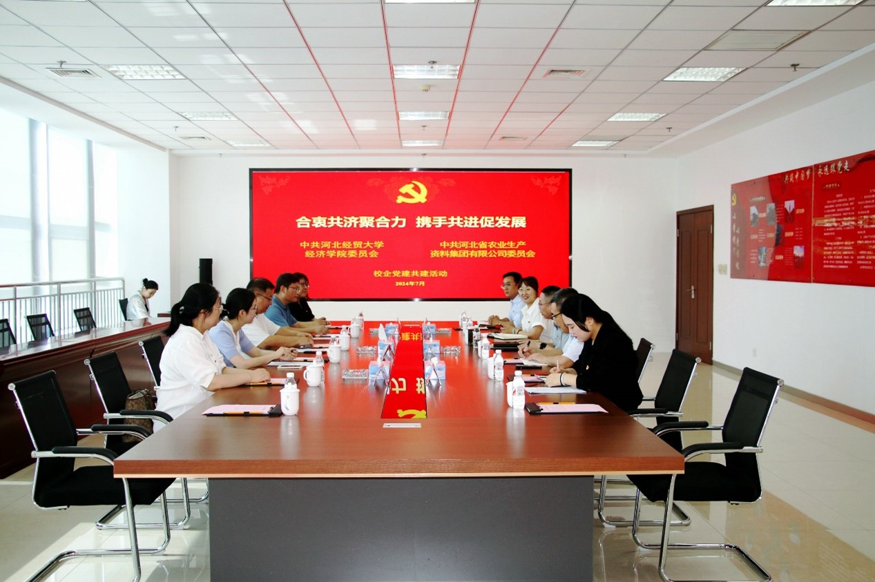 党委书记刘振滨、院长王重润、贸经教工支部书记杜颖、贸经系副主任孙玉竹、支部组织委员李振宏,河北新合作控股集团副总裁李金忠、省农资集团副总经理赵利强、副总经理韩会军、党办主任袁姣、资金营运部经理王潇参加了本次党建共建活动。