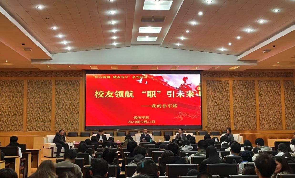 在会议中心报告厅举办“校友领航‘职’引未来一一我的参军路”主题访谈活动。