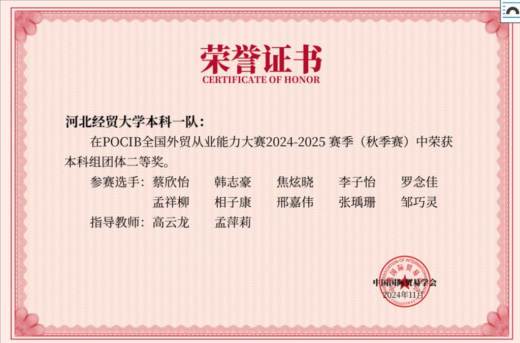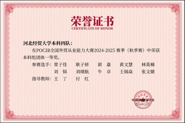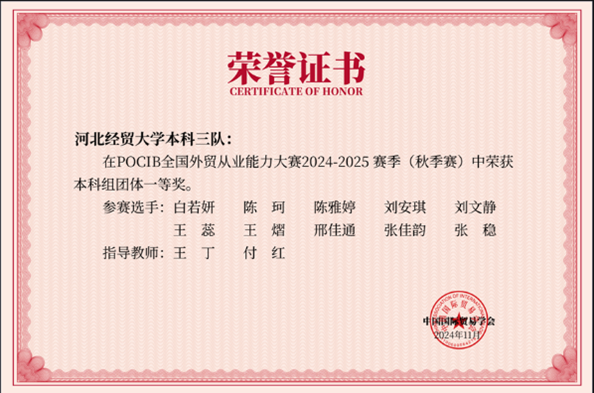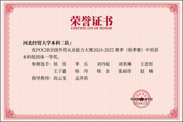 国际贸易系高云龙、孟萍莉、王丁和付红四位老师和2022级国际经济与贸易专业40名学生参加了本次大赛。在长达13天马拉松式的赛程中,在指导老师不辞辛苦指导和学生团队顽强拼搏下,最终高云龙和孟萍莉指导一队、二队分别荣获团体二等奖、团体一等奖;王丁和付红老师指导的三队和四队均荣获团体一等奖。