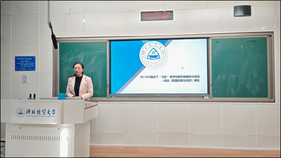 付红老师围绕跨国经营与投资课程分享教学思考。她提到课程当前面临“学生参与度低、对学习目标模糊、对自身成长关注度不够”的真实问题,计划从内容与教学生态环境两方面改进:一方面对现有课程内容进行梳理和优化,强化知识的逻辑性与实用性;另一方面搭建“四维一体”的教学生态环境,通过互动手段设计、目标引导、评价体系的优化等帮助学生明确学习意义,提升课堂参与感。