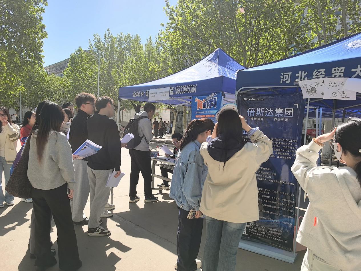 “就在经冀” 2026 年春季毕业生双选会在学校图书馆前广场顺利举办。学院党委侯彦利出席活动,全体毕业班辅导员及400余名经济类相关专业毕业生、在校生到场参会。
