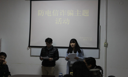 11月16日至23日,商学院开展了为期一周的“防电信诈骗”系列主题活动,活动由商学院研究生分会主办,研究生管理办公室主任程丽梅、研究生辅导员李珊珊和商学院全体研究生参加了活动。