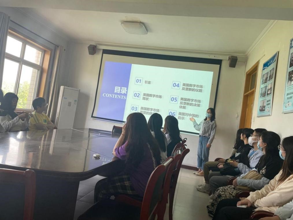 在本次论坛中,2021级产业经济学专业的韦巍巍就《新电商企业数字赋能农产品批发流通发展》、娄钰婷就《基于钻石模型分析建设国际消费中心城市的竞争力》、贾云萱就《基于STATA模型分析西藏自治区旅游总收入影响因素》《基于PEST和SWOT模型的火锅产业发展战略研究》、白如霜同学就《社区团购对线下生鲜商品价格波动的影响》《数字经济时代我国中小银行发展战略研究》做了研究报告,并就论文中的数据选取、模型构建、实证分析等作经验分享。2021级产业经济学全体及2022届学弟学妹研究生认真学习,积极讨论。