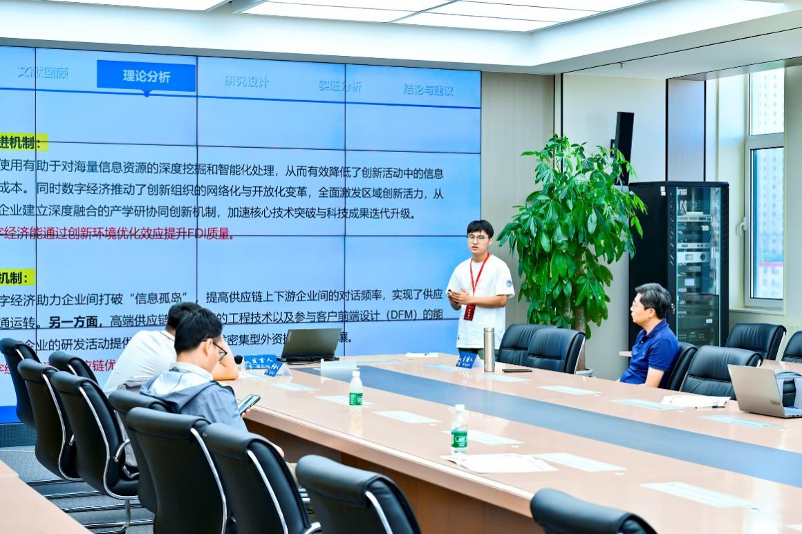 会上,代忠杰汇报了题为《数字经济能否提升FDI质量?》的论文。他条理清晰地阐述了论文的研究背景、核心观点、模型设定以及研究方法,并通过详实的实证分析证实了数字经济发展能够提升FDI质量。汇报结束后,论坛点评专家对论文工作进行了积极肯定,并提出了多条建设性意见。