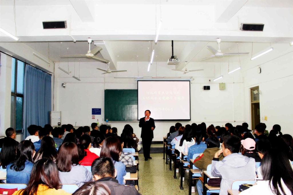 马兵林以党的十九大主题、十九大报告总体思路和逻辑结构为切入点,系统讲解了十九大报告的思想脉络、理论框构和内容体系,特别对习近平新时代中国特色社会主义思想提出的历史背景、新思想的历史贡献以及“新时代坚持和发展什么样的中国特色社会主义、怎样坚持和发展中国特色社会主义”进行了详细解读。他从新时代需要新思想领航,鼓励同学们牢牢把握习近平新时代中国特色社会主义思想的丰富内涵、思想精髓和核心要义,在学懂弄通做实上下功夫。要求同学们把握好人生的“拔节孕穗期”,进一步坚定理想信念,筑牢思想根基,厚植爱国主义情怀,练就过硬本领,为实现中华民族伟大复兴的中国梦做出贡献。讲课结合学生思想教育、基层组织建设、河北经济发展等,深入浅出,旁征博引,既富有理论性,又通俗易懂,同学们纷纷表示听课意犹未尽、受益匪浅。