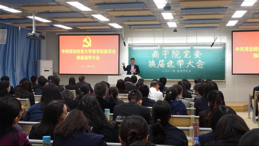 商学院委员会换届选举大会。校党委常委、副校长高晓峰出席,学院党委委员和全体师生党员参加。会议由商学院党委副书记侯彦利主持。会议应到有表决权的正式党员126人,实到117人,因事因病请假9人,实到人数符合大会选举办法的相关规定。