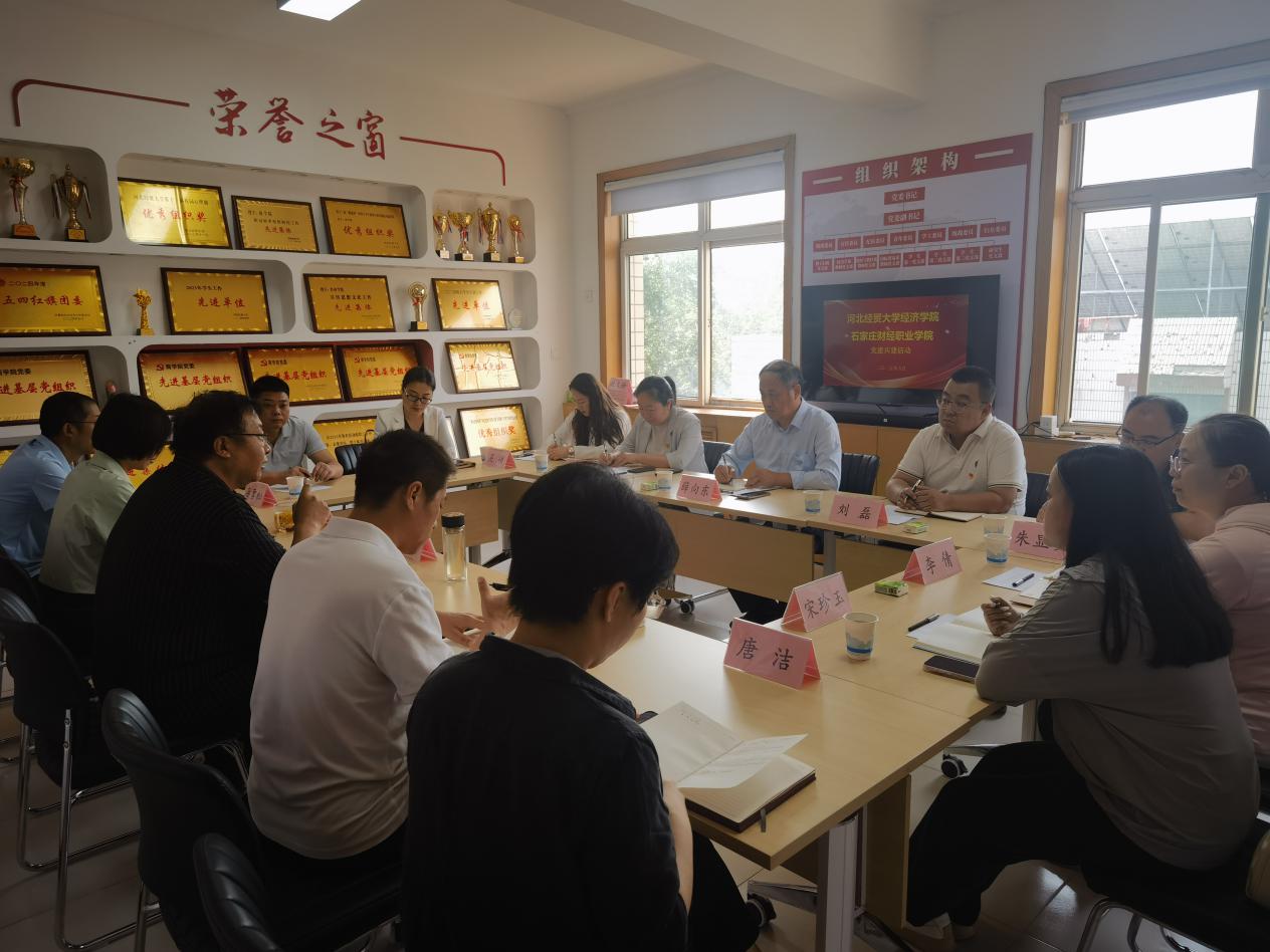 2025年5月20日上午,石家庄财经职业学院党委书记薛向东、经济管理学院党总支书记刘磊、院长刘娜等一行9人到我院开展党建共建活动。学院党委书记刘振滨、党委副书记侯彦利及相关人员参加。活动由学院党委书记刘振滨主持。