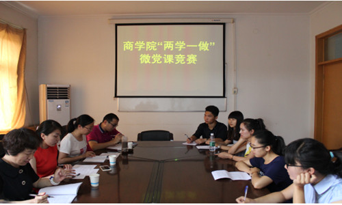 2016年5月30日,商学院于西会议室举办“两学一做”微党课竞赛,共有六个学生党支部,选派出八名选手参加了此次竞赛,党委书记邢静义与各支部书记担任比赛评委。