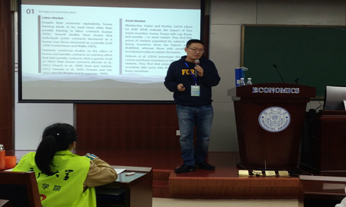 张琨老师做了题为Impact of Bonus vs Penalty Contract on Asset Prices的英文报告。他认为,不同的激励机制会导致不同的投资行为,即在penalty的激励机制下,由于损失厌恶的心理,投资者会更倾向于高价交易资产,因而推高资产价格,从而导致市场泡沫的出现。与会学者对张琨老师的研究给予高度肯定,并提出很多有益的建议。