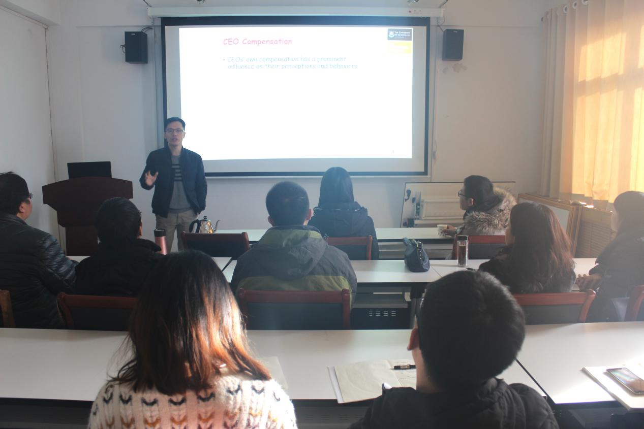 12月28日,澳大利亚昆士兰大学教授张飞达应商学院邀请,于商学院中会议室作了题为“首席执行官薪酬不足与企业社会责任”的学术报告。商学院20名教师参加本次报告。报告由商学院副院长刘振滨主持。