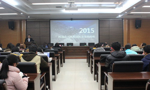 11月30日下午,商学院邀请知名校友、德国优布劳(中国)啤酒公司总经理张景智在第三会议室作题为“跨国公司开拓国际市场的战略——兼谈中国企业‘走出去’战略”的学术报告。报告会由商学院院长王小平主持,学院部分教师和学生聆听。