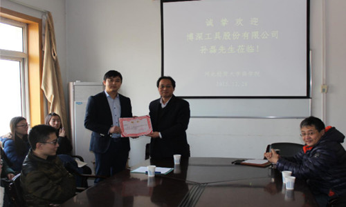 在仪式上,王小平院长为孙磊副总颁发聘书并作重要讲话,他指出本次与博深工具的合作在应用式研究生的培养方面具有重大意义,希望双方能持续合作,实现互补共赢。