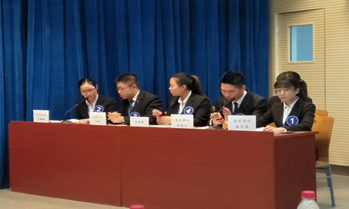 对阵的是中国政法大学代表队。我们的选手赛前经过一个月的周密准备,凭借良好的专业素养,有条不紊地展开谈判,最终实现了谈判的双赢,荣获团体一等奖。闫红梅、张少楠两位老师荣获优秀指导教师奖。