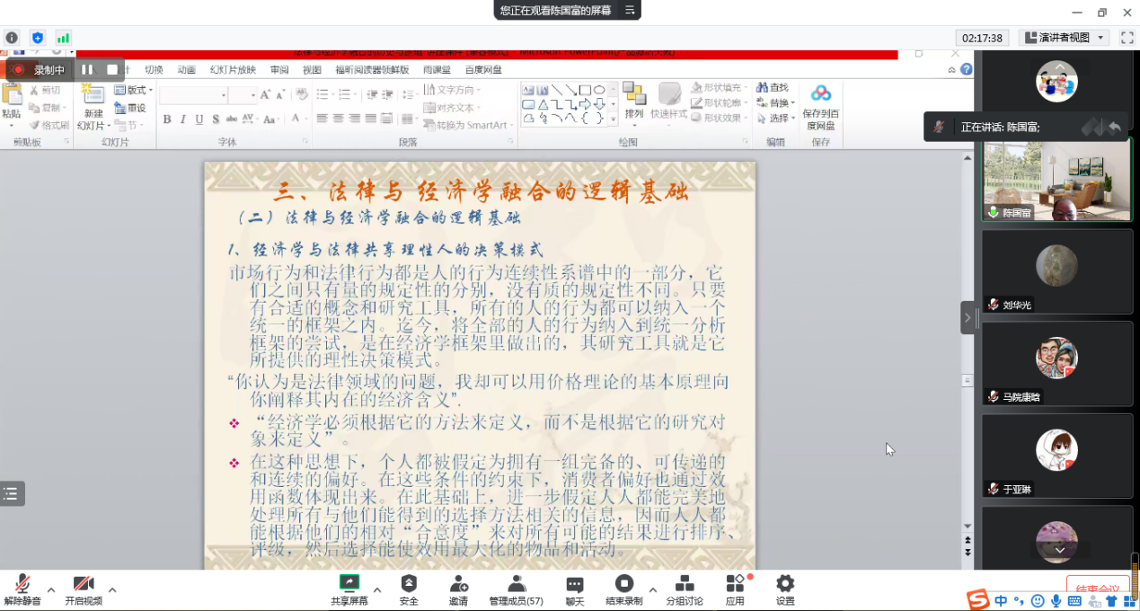 10月21日,南开大学博士生导师陈国富教授应商学院邀请,于线上作了题为“法律与经济学融合的历史与逻辑”的学术报告。报告由刘华光院长主持,学院五十余名师生参加。