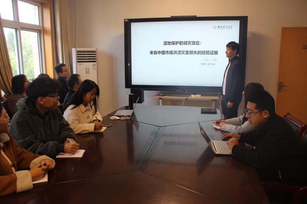 闫硕博士于西会议室作了题为“湿地保护的减灾效应:来自中国市级洪涝灾害损失的经验证据”的学术报告。报告由性爱影片