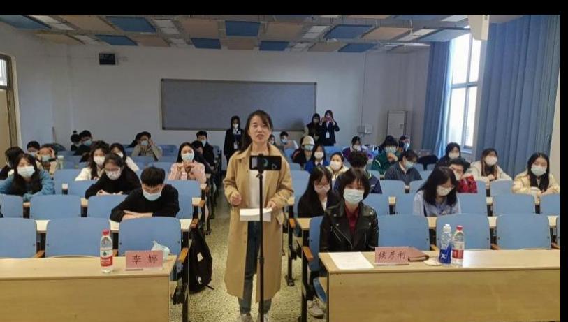 接着,侯书记为学生们介绍了外贸精品班的情况。外贸精品班是商学院的传统项目,旨在为河北省外贸行业定向培养国际贸易人才,解决中小外贸企业人才需求和高等院校毕业生就业需求。她指出,外贸精品班是学生提高实战经验的有力平台,学院邀请到知名外贸企业专家进行授课,涵盖国际贸易中的信用保险、出国展览、跨境电商及新媒体运营等实际工作中的专业知识和职业需求等,有利于提升同学们的专业技能,为同学们提供就业机会。