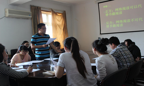 本次辩论赛以“读书”为主题分为两场:第一场比赛以“读书宜博还是宜精”为辩论主题;第二场比赛以“网络阅读是否可以代替书籍阅读”为辩论主题。双方选手在辩论过程中礼貌得体,在立论、驳立论等各个环节思路清晰,引经据典,陈词激昂,现场气氛激烈有序。经过激烈角逐,第一场辩论赛由正方胜出,最佳辩手由李亚坤同学获得;第二场辩论赛由反方胜出,最佳辩手由崔琳同学获得。