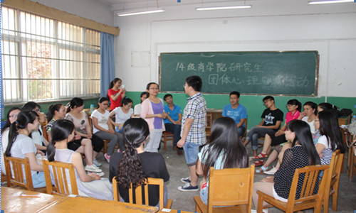 2015年6月8日下午,商学院研究生举办了“我爱我”心理健康月团体心理辅导活动。本次活动特别邀请了河北师范大学心理健康指导服务中心刘馨元主持。商学院研究生管理办公室主任程丽梅、研究生辅导员李珊珊及2014级全体研究生参加。