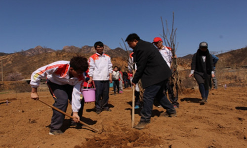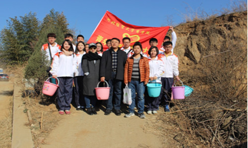 3月26日,商学院党委副书记董爱民带领18名师生赴平山县苏家庄乡十里沟村积极开展“志愿服务在行动,春暖平山种爱心”义务植树活动,是河北金峻信息科技有限公司董事长王凤爽先生“精准扶贫”的重要项目。