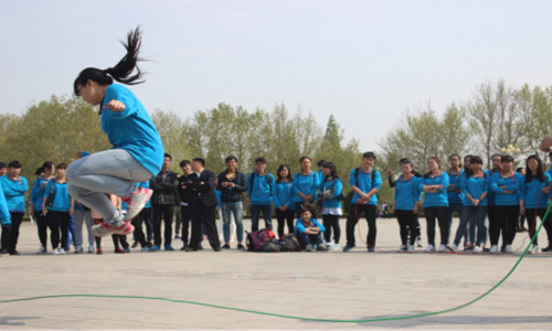 4月11日下午2时,商学院在第一教学楼前开展大学生“素质拓展”校园跳绳比赛活动。商学院大一到大三所有班级参与比赛。商学院党委副书记董爱民、团委书记康晗、各班辅导员老师莅临比赛现场,观看了本次比赛。