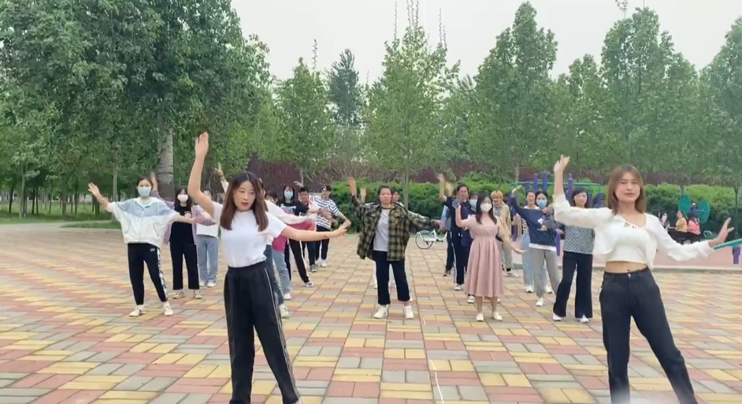 首先,《开心往前飞》音乐响起,拉开了本次活动序幕。三班同学由范成林和徐佳慧同学领舞,她们先带领同学们学习舞蹈动作,经过一番练习,同学们跟随音乐节奏一起舞蹈,接着四班同学在孙毓琳和王梦然同学的带领下一起跳起了《狼的诱惑》。现场活力四射,一片欢声笑语。