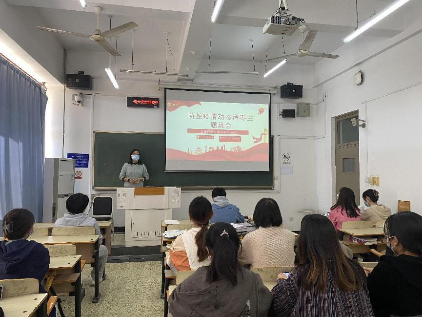 主题班会通过解读疫情防控相关的国家政策和法规、分享视频和学习文章的形式展开,重点学习了人民日报发表的两篇文章《“动态清零”可持续且必须坚持》和《“躺平”不可取,“躺赢”不可能》。通过班会讲解,同学们更加深入地了解我国坚持“外防输入、内防反弹”的总策略和“动态清零”的总方针,了解了只有坚持“动态清零”,才能较好地平衡疫情防控和经济社会发展之间的关系,能够让我们用最小的代价实现最大的防控效果,这既是秉承科学精神、科学态度的基本要求,也是遵循科学规律、保障人民根本利益的必然选择。