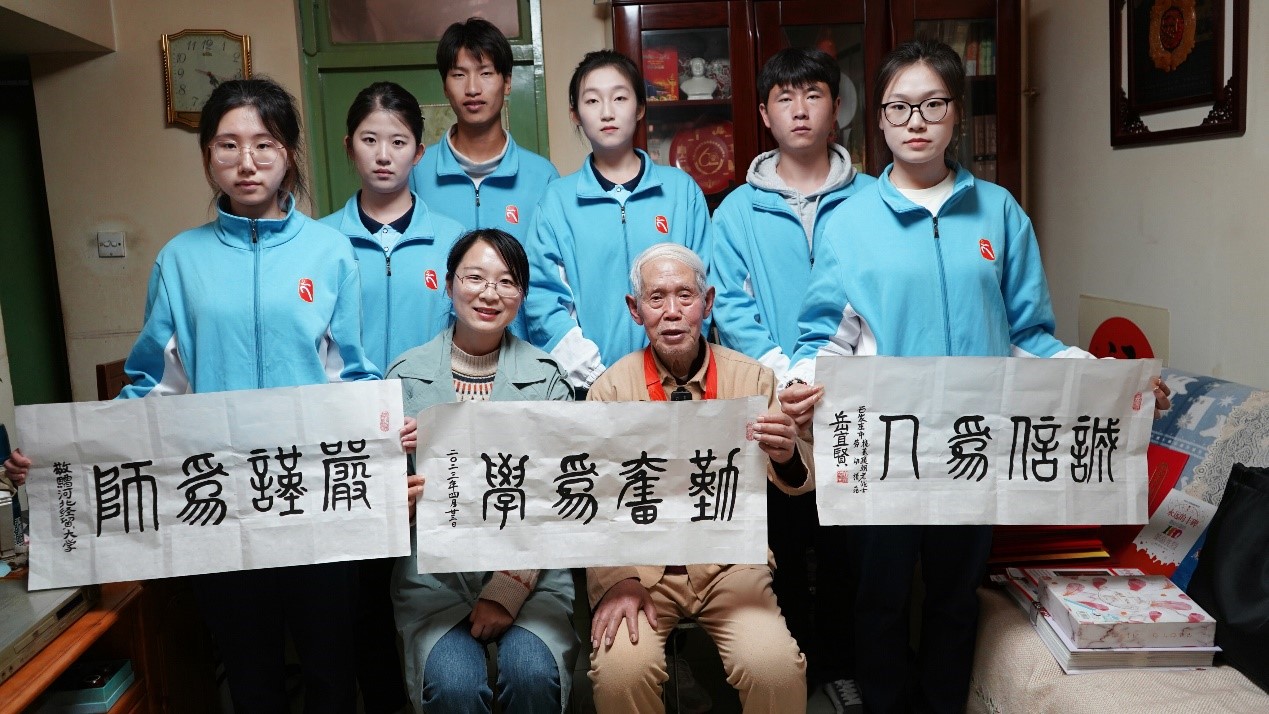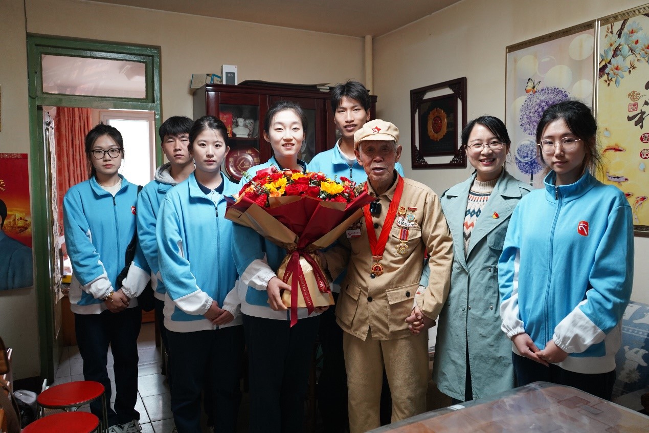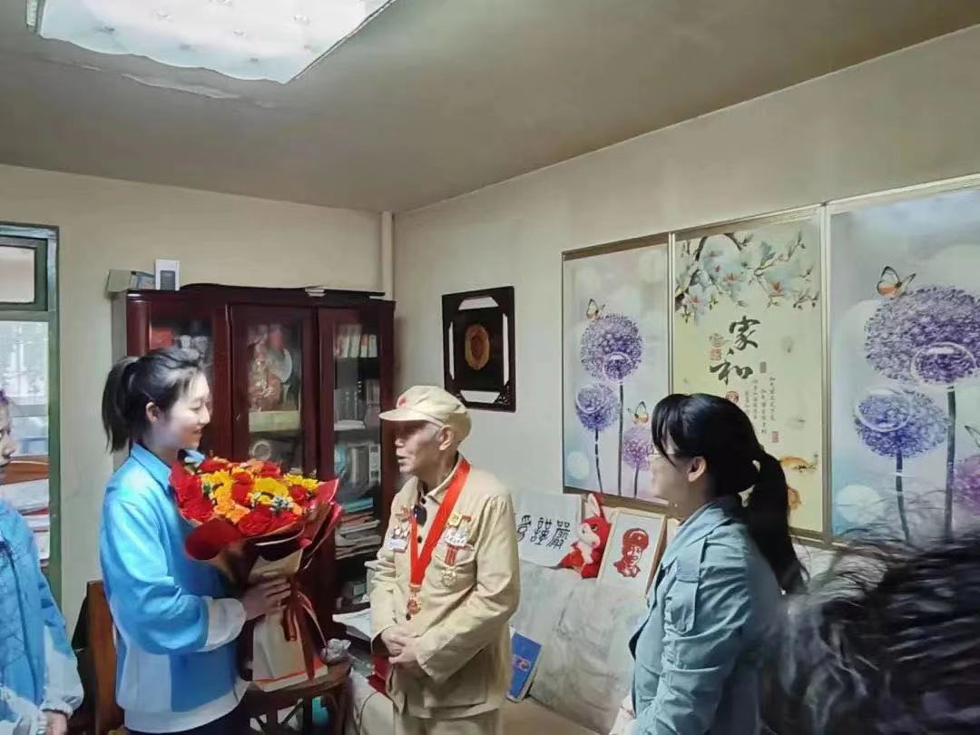 建校七十周年,4月23日下午,商学院学生工作办公室主任路荣带领学生干部们与河北省爱心公益协会组成慰问小分队,前往石家庄市长安区拜访抗美援朝退伍老战士岳宜贤老人。