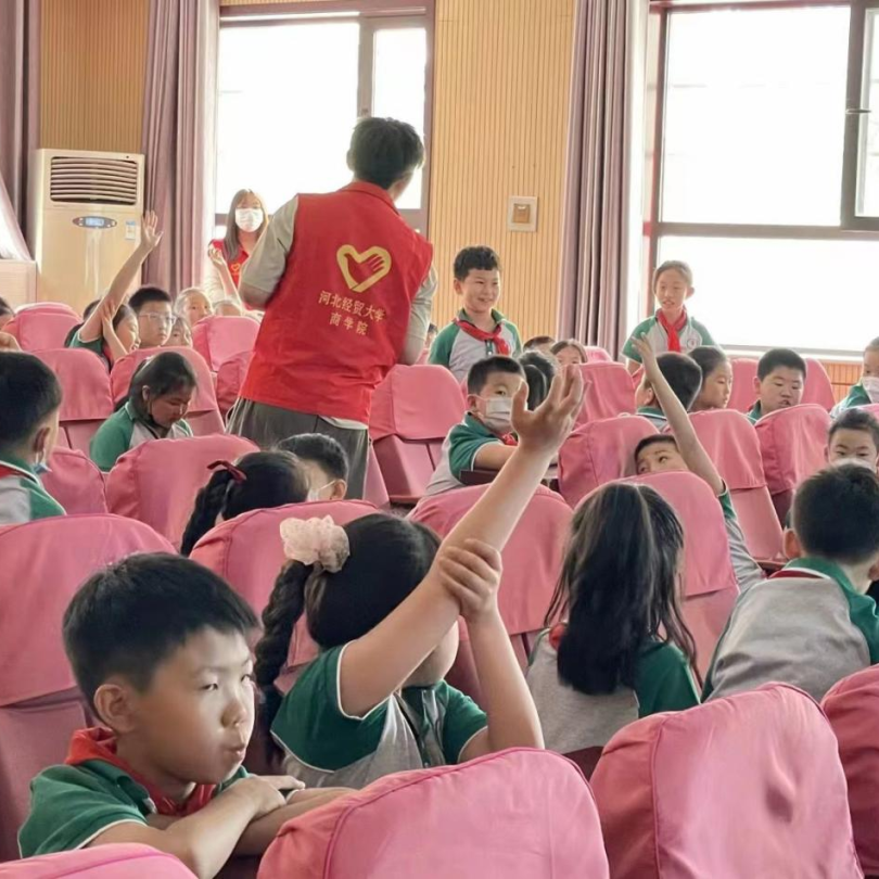 2023年5月23日,商学院青年志愿者服务大队带领大学生宣讲团队来到石家庄市金地小学,为同学们普及关于“货币的演变”的财商知识。