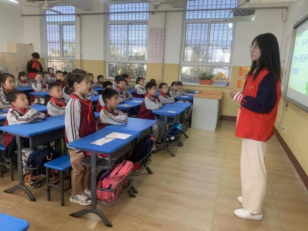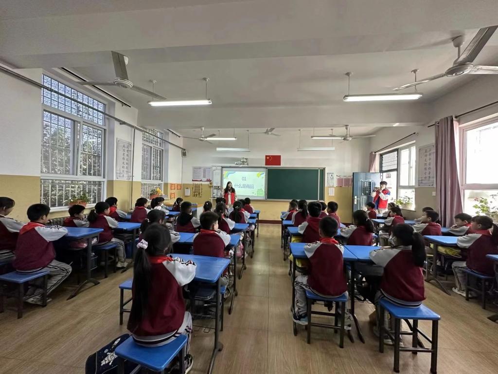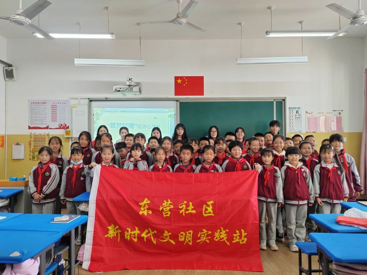 商学院专职辅导员老师王小健、吴子雨与青年志愿者服务大队带领大学生志愿者教师团队来到了东营小学,开启了新一期的“筑梦财商”经济学小课堂。