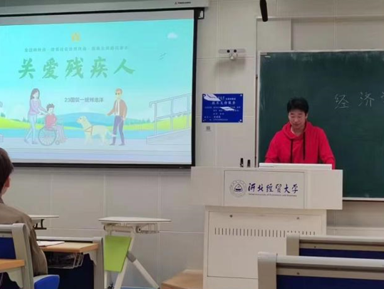 不同专业班级的学生,他们通过精心准备的PPT和生动的语言,从不同方面来讲述助残日的来历、顽强拼搏的残疾人的故事、助残的意义等精彩内容,呼吁更多人关注和支持残疾人。