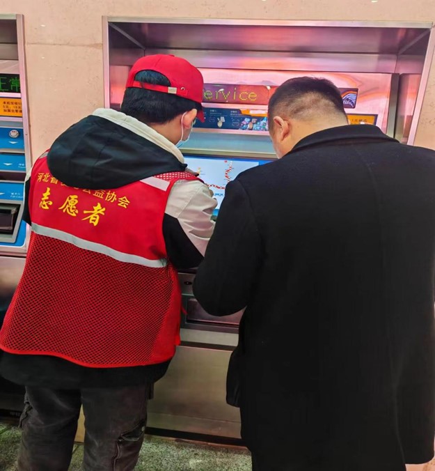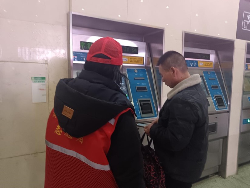 地铁票自动购票处、火车票售票处也都能看到青年志愿者们帮助旅客们解决问题的身影。他们帮助旅客查看路线,购买车票,充分弘扬了“奉献、友爱、互助、进步”的志愿精神。